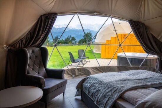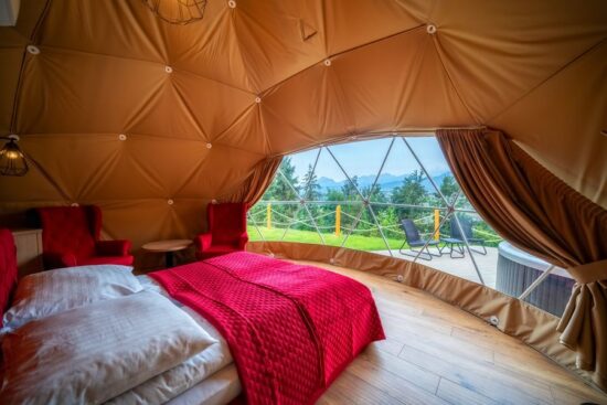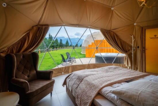 Wyjątkowe luksusowe namioty z prywatnym jacuzzi oraz przepięknym widokiem na pasmo Tatr. Odpoczywaj w ciszy i spokoju z daleka od miasta.