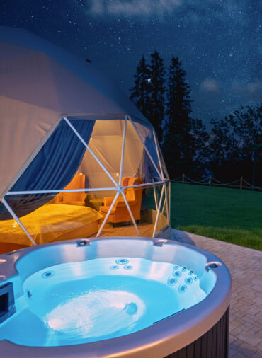 Każda kopuła posiada swoje prywatne jacuzzi wraz z prysznicem.