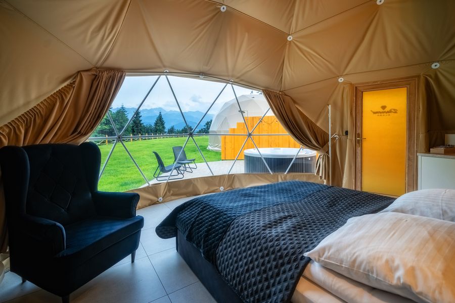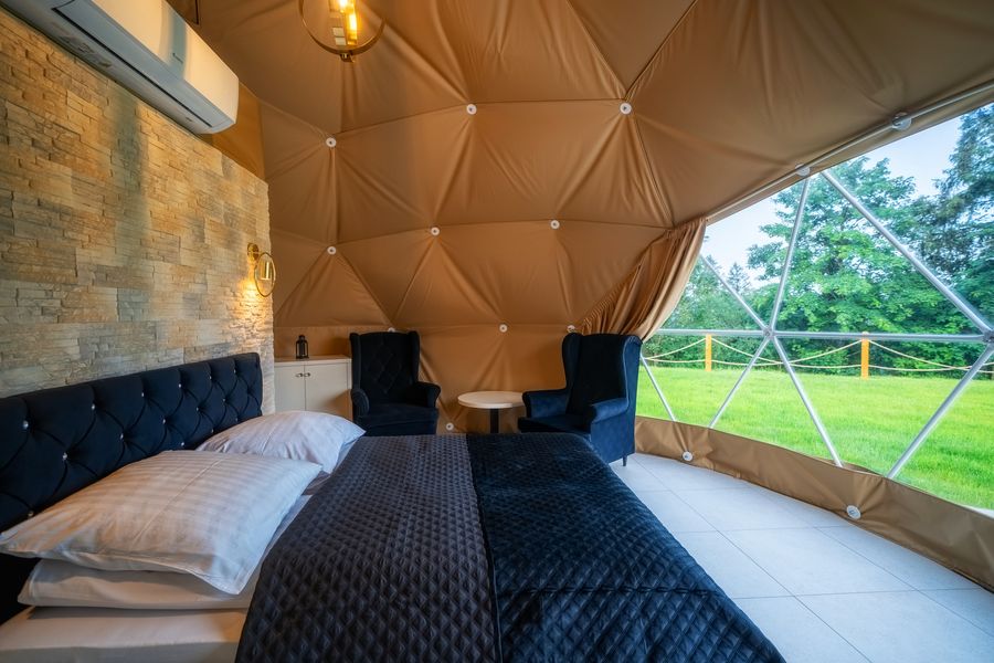 Wyjątkowa kopuła z akcentami w kolorze czarnym z prywatnym jacuzzi.